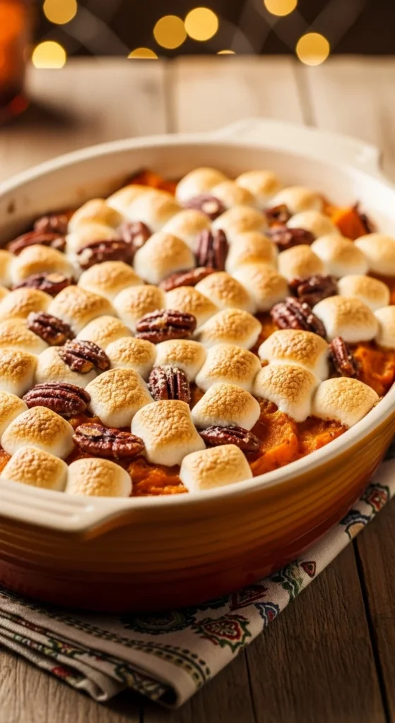 - Top with marshmallows and pecans.