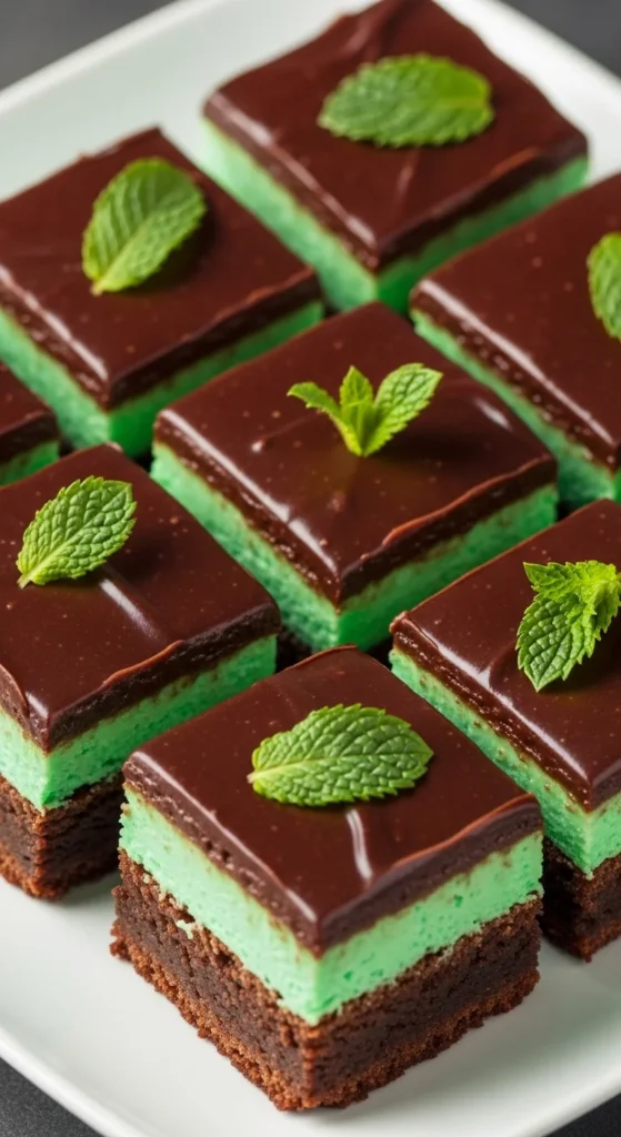 Fudgy brownies with a refreshing mint layer.