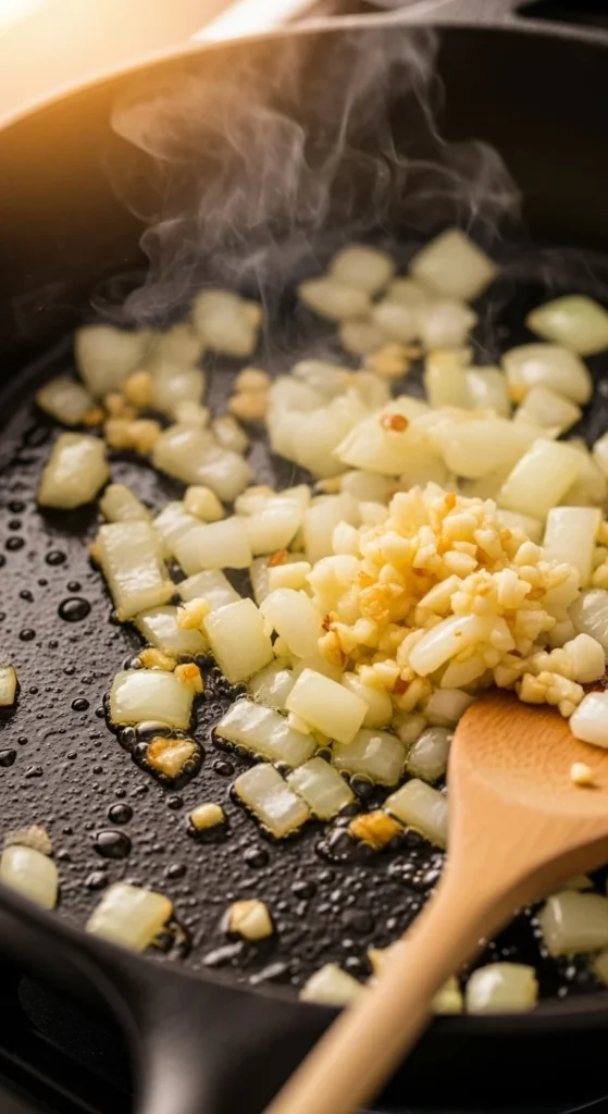 2. Add onions and garlic first