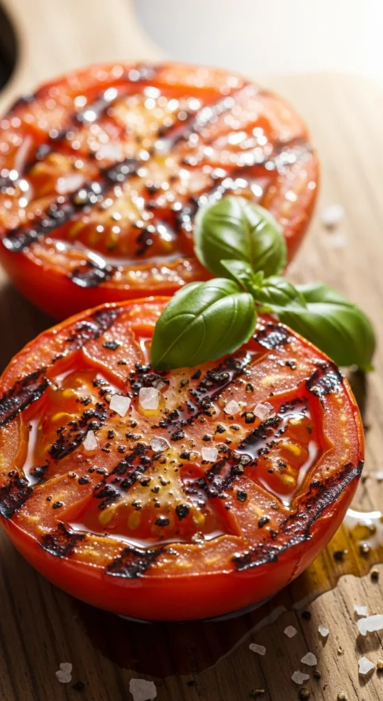 4. Grill tomatoes and mushrooms until soft.