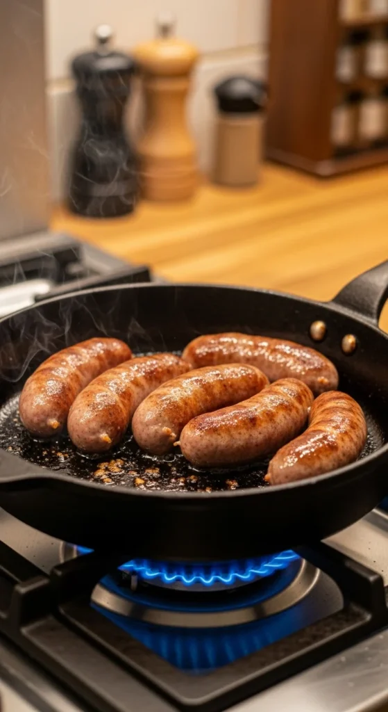 2. Cook sausages 12–15 minutes, turning often.