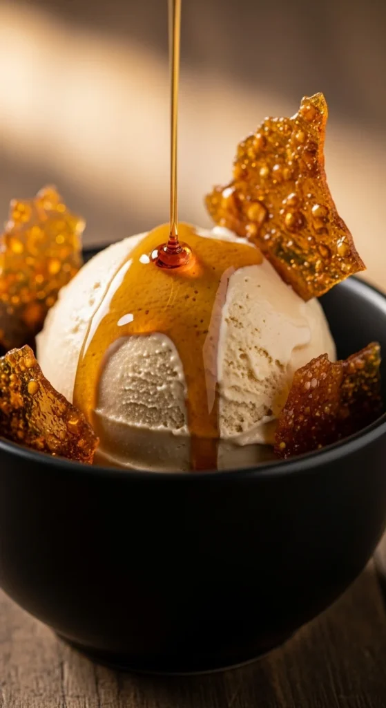 Rich brown butter flavor folded with maple for a luxurious frozen dessert — no machine required.