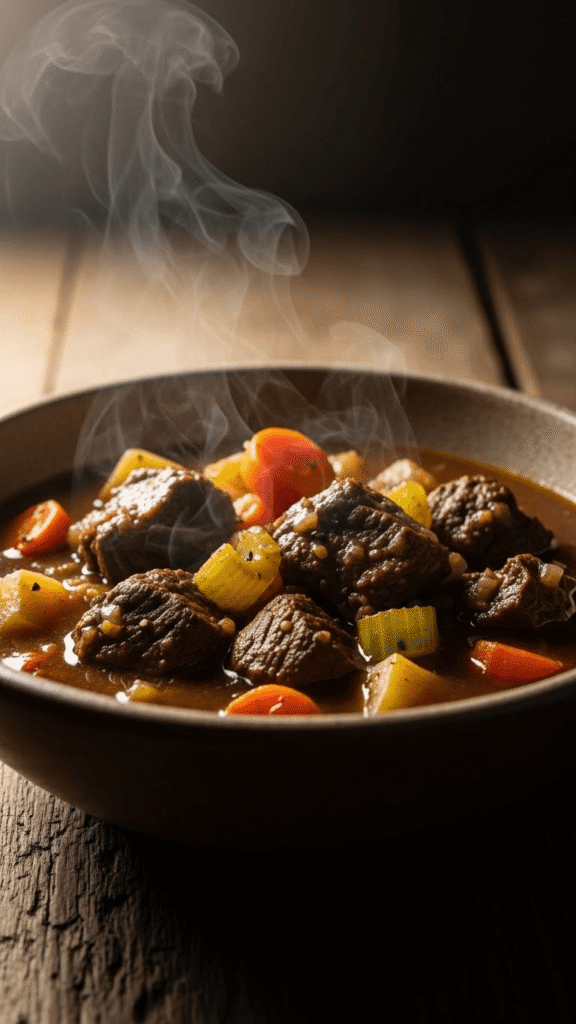 Hearty stew simmered with stout for deep flavor.