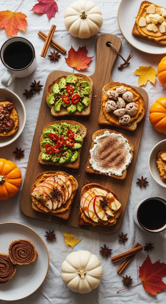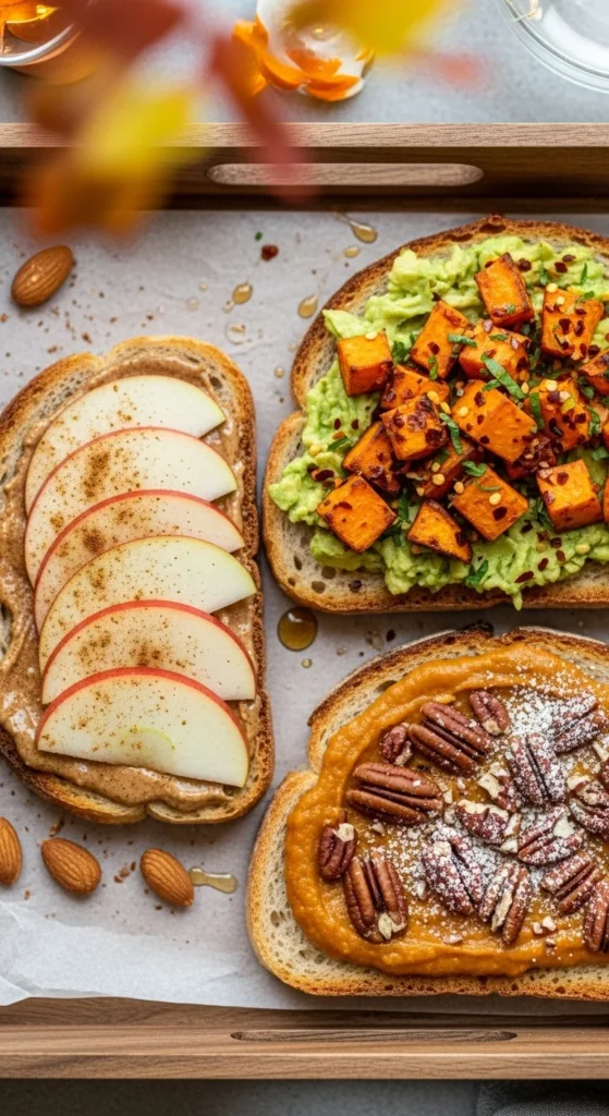 This is where your toast transforms from “simple breakfast” to “fall masterpiece.” Your spread sets the stage for the toppings — creamy, flavorful, and always seasonal.