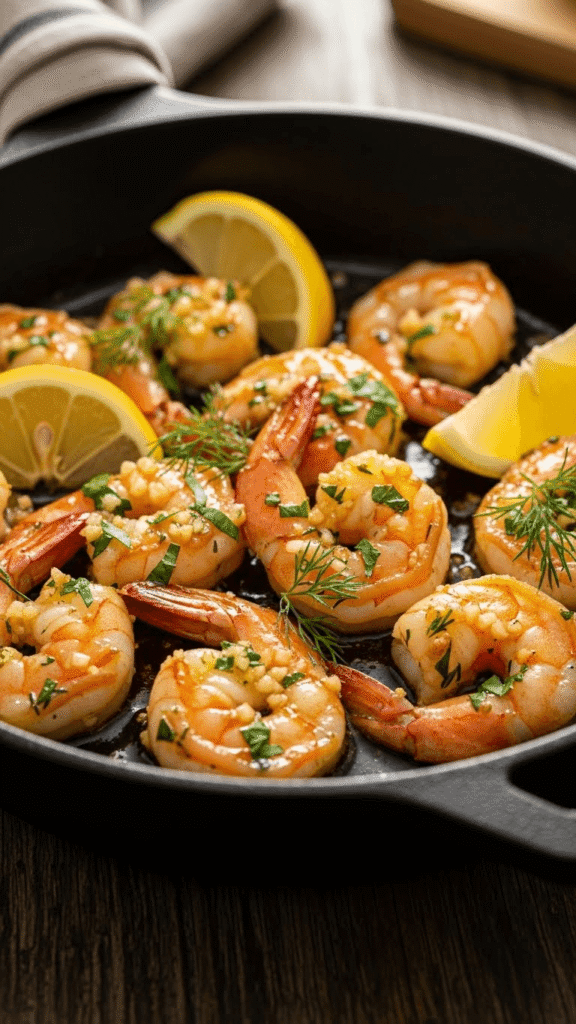 - Cook shrimp in butter and garlic for 2–3 minutes per side.