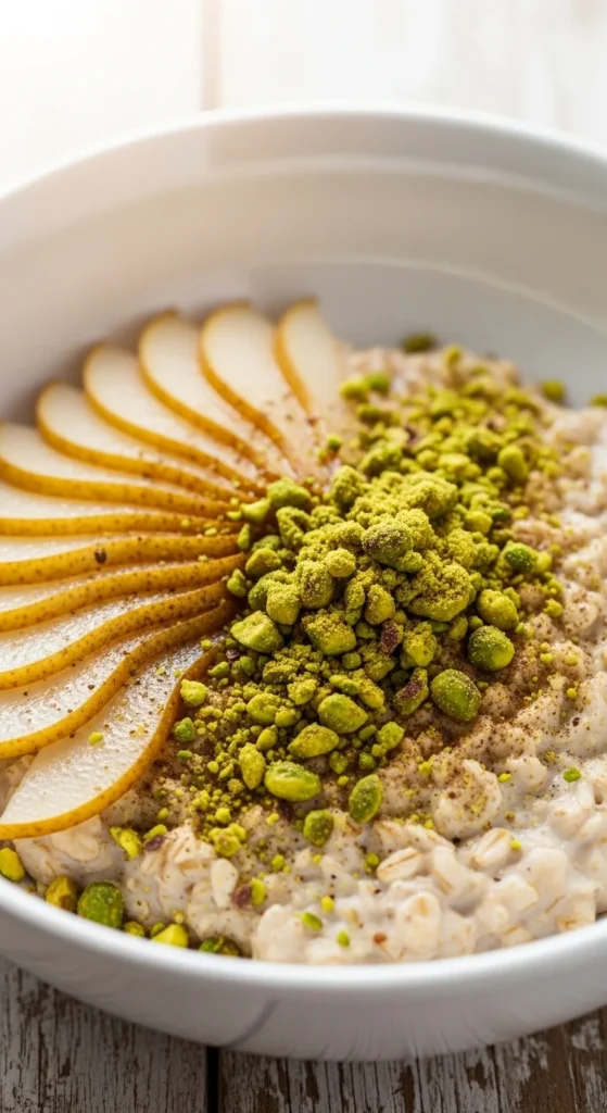 - 1 pear, sliced and lightly poached