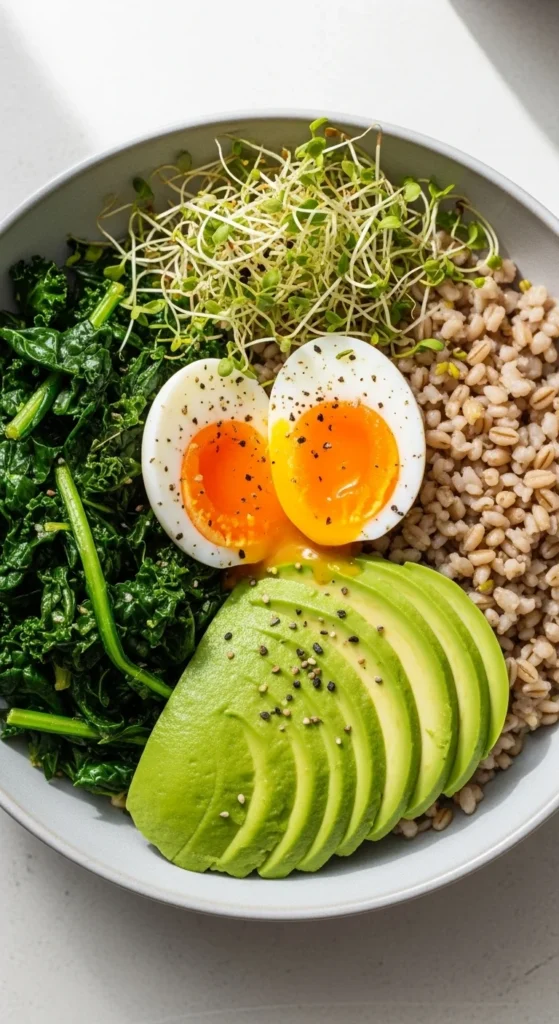 22. Savory Breakfast Grain Bowl with Eggs & Avocado