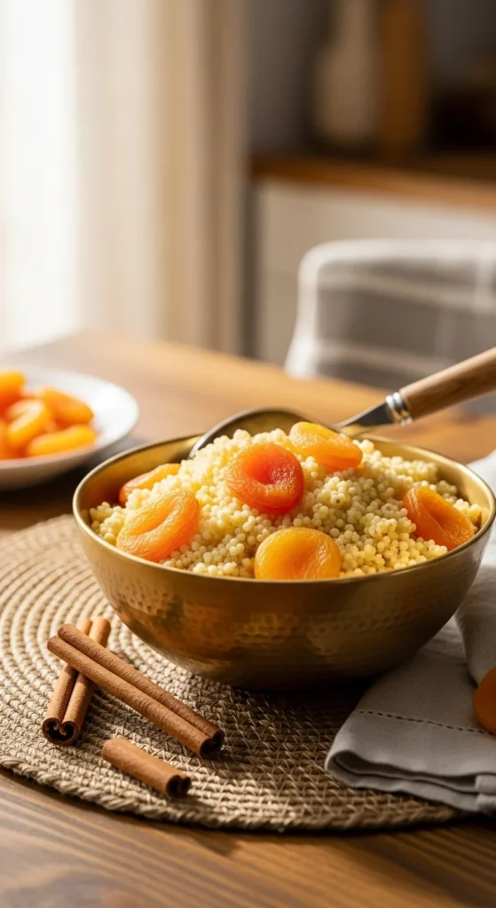 Gently spiced millet studded with chewy apricots for a warm, comforting bowl.