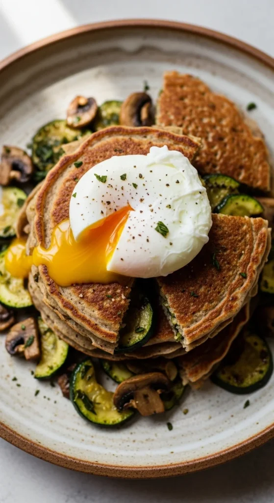 24. Savory Buckwheat Pancake Bowl with Sautéed Veggies