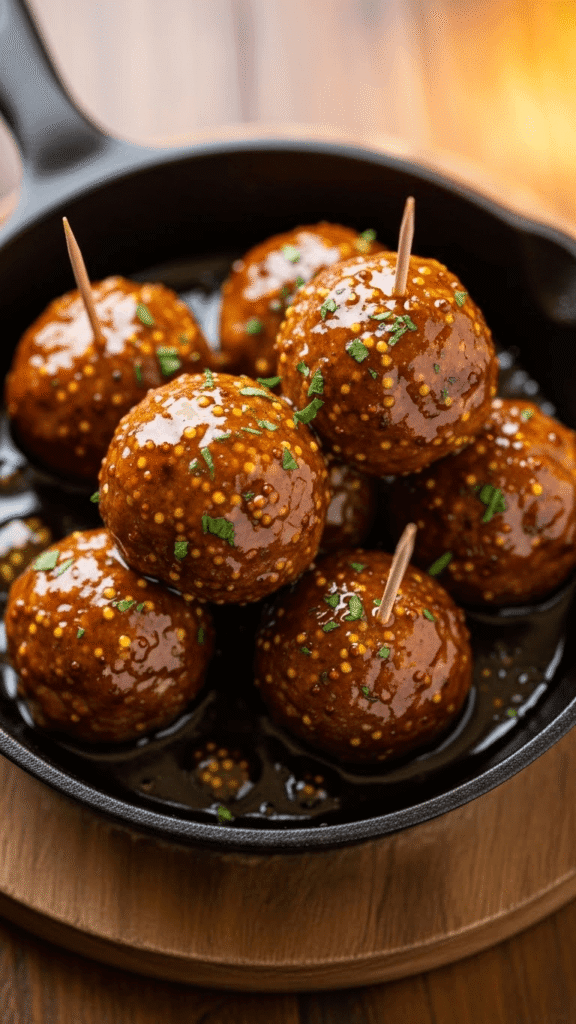 4. Warm honey and mustard in a saucepan; toss meatballs in sauce.